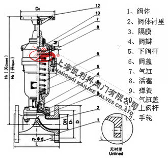 聲明:【GK641J常開式氣動隔膜閥】規格型號、結構尺寸由上海凱利科閥門有限公司提供,如何選擇適用的GK641J常開式氣動隔膜閥產品,使之在工藝控制中安全可靠、經濟適用,可致電我司銷售部門及技術部門,我們將在最短的時間內為您解答!