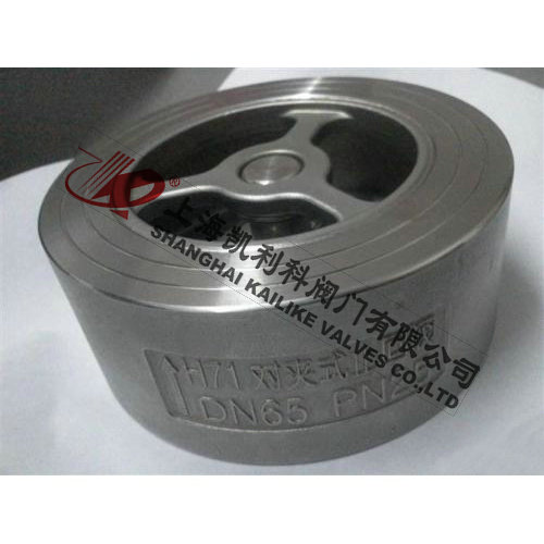H71H、H71W對夾式止回閥該閥由閥體、閥瓣、彈簧等組成,水平或垂直安裝于管路系統(tǒng),防止介質(zhì)倒流,具有結(jié)構(gòu)短、體積小、質(zhì)量輕;閥瓣關(guān)閉快速,水錘壓力小;流道通暢,流體阻力小;動作靈敏,密封性能好。