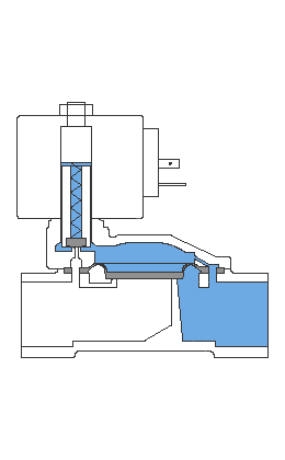 當電磁閥電磁線圈通電時,線圈激磁回路形成磁場并產生磁力,活動鐵芯受電磁力的吸引克服了自重與彈簧的阻力而上升。當工作壓力小于0.05Mpa時,活動鐵芯上移打開導閥直接拉動主閥口膜片,形成通路;當工作壓力大于0.05Mpa時,通過首先打開導閥,使膜片上下腔產生壓力差,膜片在差動力的作用下克服自重和閥芯彈簧而開啟隨即主閥口全開,斷開電源時,導閥口在彈簧力的作用下關閉,閥芯膜片受向下的壓力而關閉主閥口,閥口斷流,電磁閥處于關閉狀態(常開閥與此相反)。